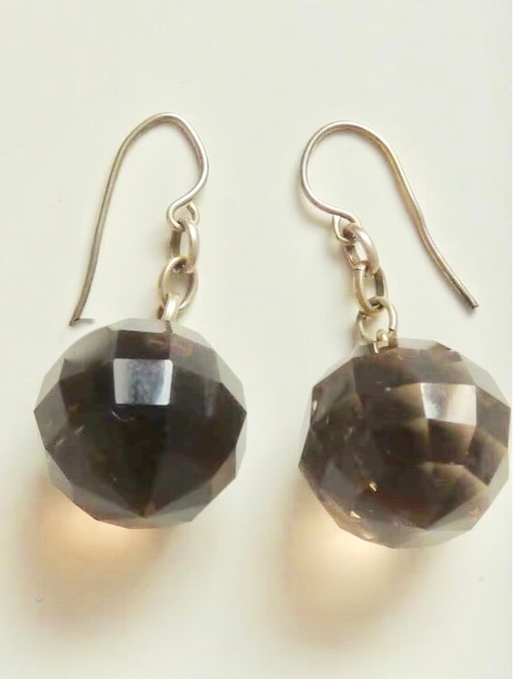 Buy Napoleon III Antique Earrings. Silver With Facet Cut Smoke