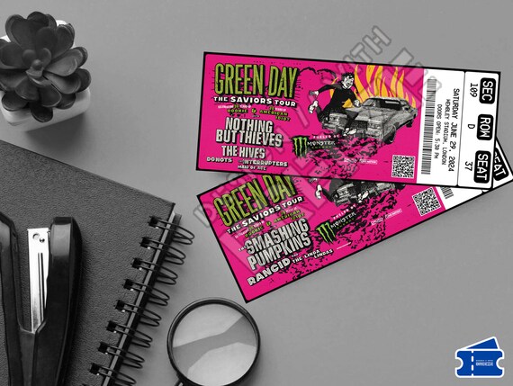 Source : www.gigsandtours.comGreen Day 2024 USA & Canada Concert Presentation Gift Ticket, the