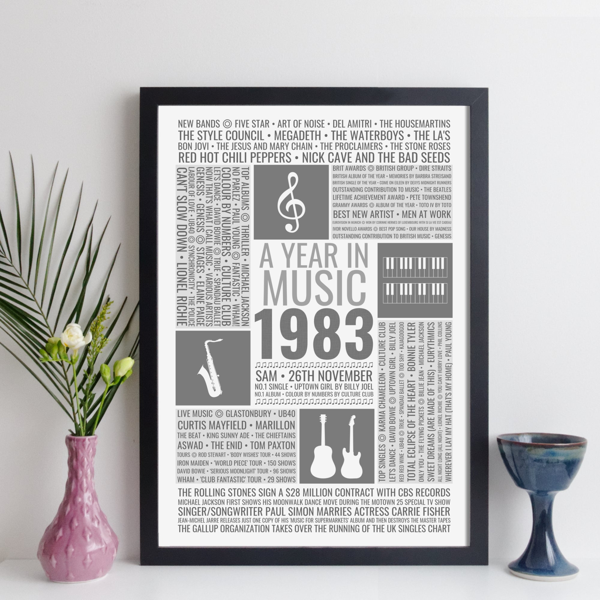 Personalised 1983 Music Facts Print 40th birthday gift idea