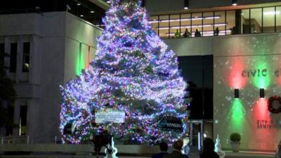 Officials light the Evansville Christmas tree